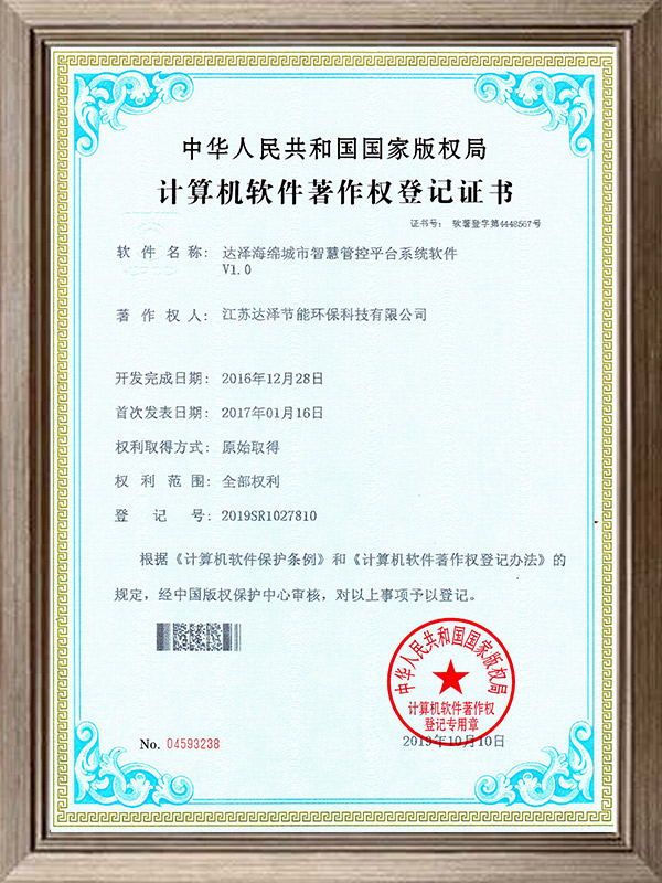 达泽海绵城市智能管控平台系统软件软著证书